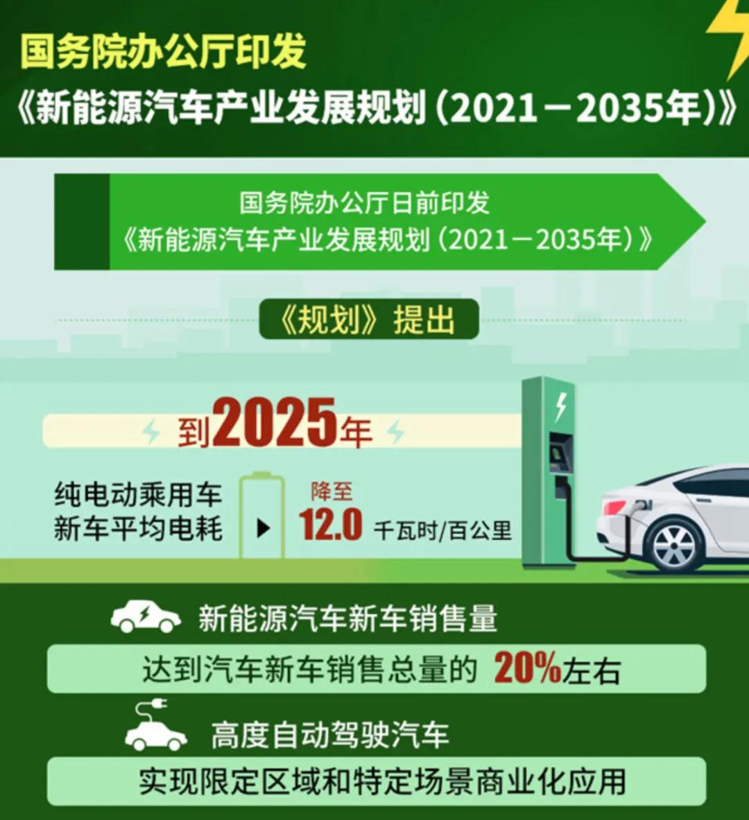 根據(jù)國務(wù)院辦公廳在2020年11月發(fā)布的《新能源汽車產(chǎn)業(yè)發(fā)展規(guī)劃(2021-2035)》,中國的新能源汽車的市場將會繼續(xù)擴大。發(fā)展到2025年,中國新能源汽車銷量預(yù)計將會達到500萬輛,達到汽車新車總銷量的20%,占據(jù)全球新能源汽車市場的44%,中國將會成為新能源汽車第一大國。