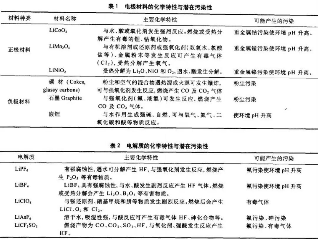 三元鋰電池中的電極材料、電解質(zhì)以及溶劑中則含有鎳、鈷、錳、氟等物質(zhì),如果在回收之后處置不當,會對環(huán)境造成嚴重污染。更為嚴重的是,電池報廢之后,內(nèi)部仍然會有30~100V不等的高壓,如果在回收中操作不當,還有可能引發(fā)起火、爆炸、重金屬污染以及有機廢氣排放等多種問題。