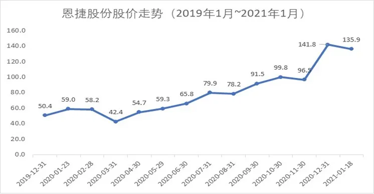 從二級市場的股價走勢不難看出,市場對于恩捷股份的產(chǎn)能擴張戰(zhàn)略認可度較高。行業(yè)龍頭地位穩(wěn)固,市值超過1,200億元,僅2020年年內(nèi)便已實現(xiàn)200%的漲幅。