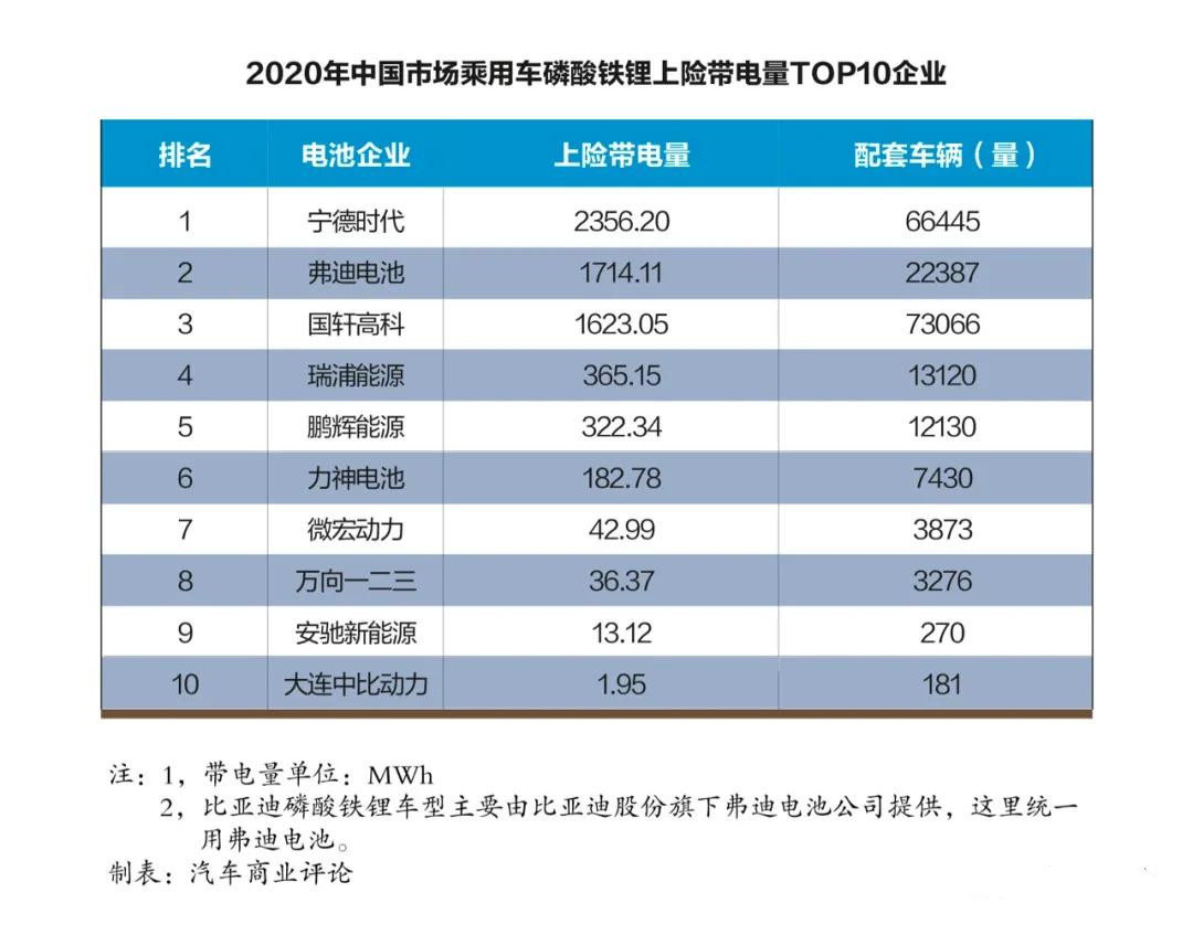 在磷酸鐵鋰領(lǐng)域,2020年,寧德時(shí)代以上險(xiǎn)帶電量2356.20MWh的成績(jī)拿下國(guó)內(nèi)磷酸鐵鋰乘用車市場(chǎng)冠軍,這得益于它為25658輛國(guó)產(chǎn)特斯拉Model 3配套。這也是寧德時(shí)代連續(xù)第四年拿下磷酸鐵鋰全球出貨量第一名。