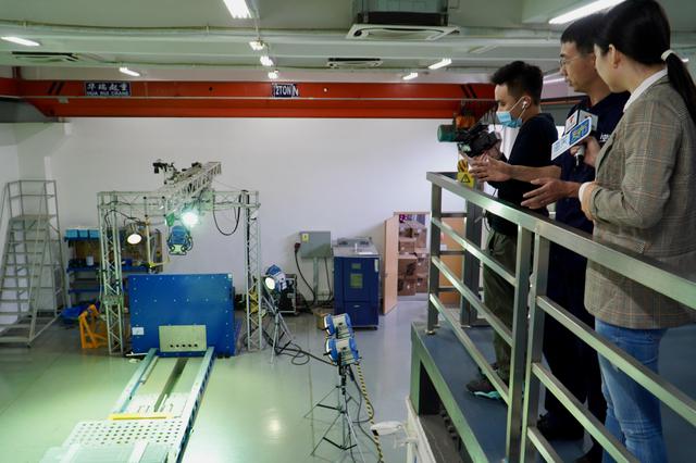 廣州海關(guān)工作人員展示講解新能源汽車電池的模擬高速碰撞測試。