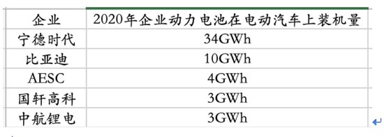 2020年全球動力電池在電動汽車上的裝機量Top 9企業(yè)中,中國企業(yè)占了5席:寧德時代、比亞迪(002594.SZ)、AESC(遠景能源)、國軒高科(002074.SZ)、中航鋰電。