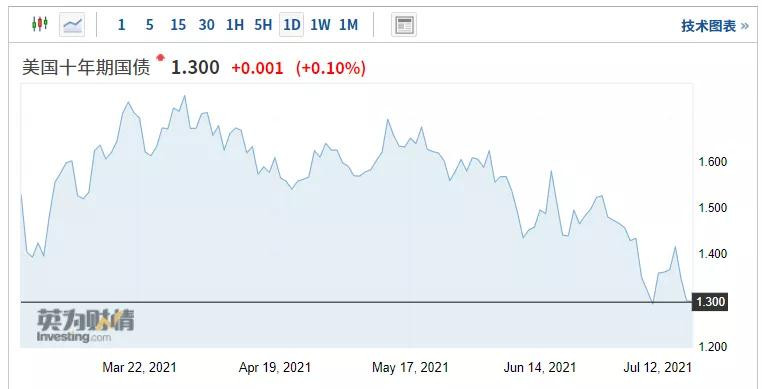 所不同的是,新能源汽車和光伏等賽道龍頭在這波殺估值后股價又重新爬了上來,這一方面源于賽道自身極為優(yōu)秀的基本面和前景,另一方面也源于美國通脹超預(yù)期消化后,美債收益率開始不斷下行。尤其是6月底以來,十年期美債收益率大幅下滑,一度跌穿1.3%。