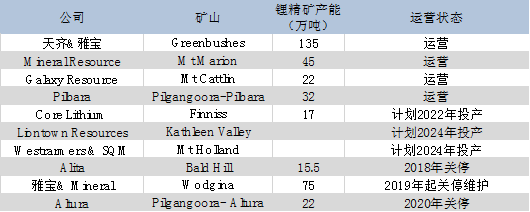 澳洲目前正在運(yùn)營中的鋰礦共有4座,全部位于西澳,另有多個(gè)鋰礦正在建設(shè)中。