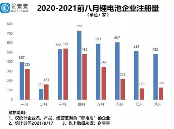 2、我國(guó)2021年前八月新增鋰電池相關(guān)企業(yè)2324家