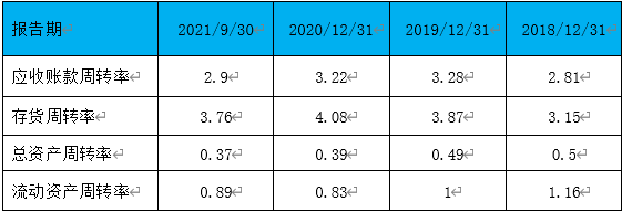 在評(píng)價(jià)經(jīng)營能力的另一個(gè)層面上,公司的資產(chǎn)周轉(zhuǎn)狀況,并不令投資者感到擔(dān)憂。整體資產(chǎn)周轉(zhuǎn)維持在制造業(yè)的基準(zhǔn)水平,在需求高企的背景下還是可以接受的,賬齡也基本在一年內(nèi),降低了壞賬風(fēng)險(xiǎn)。