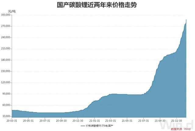 一方面,動力電池的上游原材料鎳、鈷、鋰等金屬價格波動之劇烈超出市場預(yù)期,如電池級碳酸鋰均價已從2021年初的5萬元/噸,一路跳漲到近期的29萬元/噸,漲幅達(dá)480%,最高報價甚至突破30萬元/噸,而鈷價也已創(chuàng)近3年來的新高。