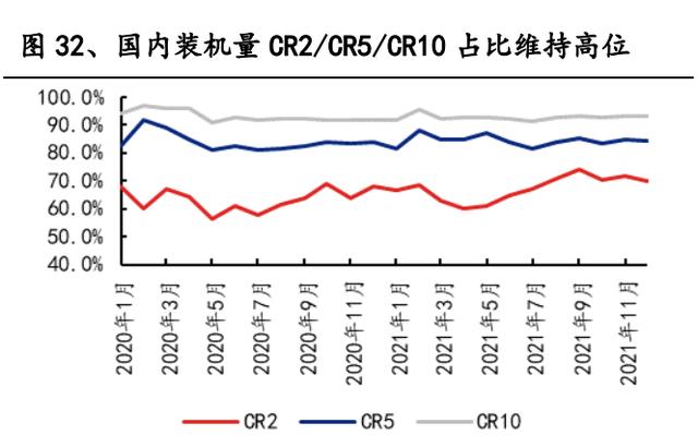 頭部聚集效應(yīng)維持高位,頭部公司市占率穩(wěn)定,二線廠商競爭激烈。2020/2021 年國內(nèi)動力電池裝機量 CR3 為 63.4%/67.3%,CR5 為 84%/84.5%,CR10 為 93.2%/92.8%,頭部聚集效應(yīng)明顯,公司與比亞迪市占率穩(wěn)中有升。而除頭部兩家 廠商以外,其他廠商的出貨量排名波動明顯,其中,中航鋰電依靠 2021 年對廣汽 的供貨將 2021 年的排名穩(wěn)定在 3~4 名,蜂巢能源則依靠對長城汽車的穩(wěn)定供貨, 從 2021 年 7 月開始,排名穩(wěn)定在前 7 名。整體來看,3-10 名排名波動仍舊頻繁, 二線廠商競爭依然激烈。