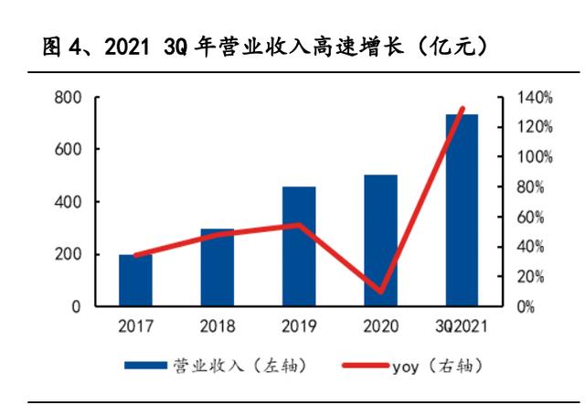 公司營收與歸母凈利潤同步高增。2017-2020 年,公司連續(xù)四年登頂全球動力電 池出貨量榜首,龍頭地位持續(xù)鞏固。2021 年前三季度公司實現(xiàn)營收 733.62 億元, 同比增長 132.7%,實現(xiàn)歸母凈利潤 77.51 億元,同比增長 130.9%,在低基數(shù)效應(yīng) 和下游需求高增的雙重推動下,營收凈利增速雙創(chuàng)近五年同期新高。2021 年全年 公司預(yù)計實現(xiàn)凈利潤 140-165 億元,同比高增 181.38%-228.28%。