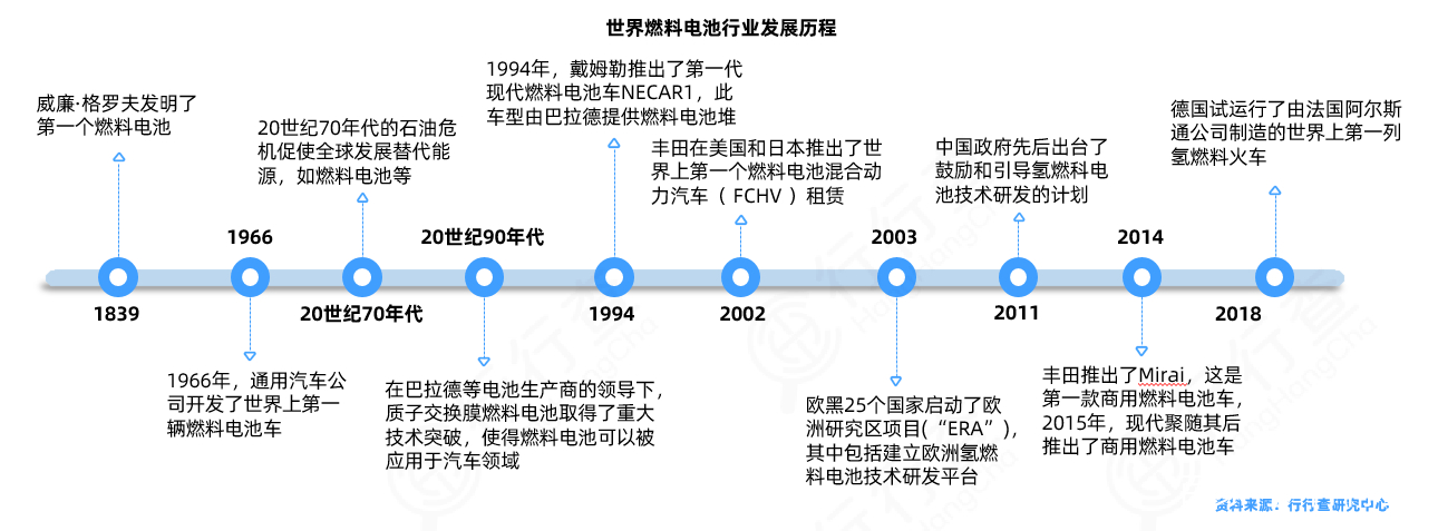 燃料電池行業(yè)發(fā)展歷程: