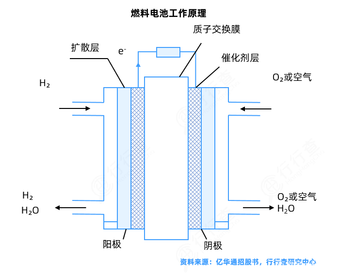 上游材料:上游主要包括膜電極、雙極板和密封層。其中,膜電極由催化劑、質子交換膜和氣體擴散層三種組分構成。膜電極是燃料電池電化學反應最重要的基本單元,它的結構設計和制備工藝技術是燃料電池的關鍵技術,決定了電池的工作性能。