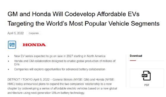 4月5日,美國(guó)通用汽車(chē)和日本本田兩大傳統(tǒng)汽車(chē)公司公開(kāi)發(fā)布消息,指出將采用新的電池技術(shù)生產(chǎn)新架構(gòu)的電動(dòng)車(chē)。