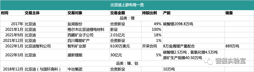 比亞迪的鋰礦投資相對寧德時代來說,數(shù)量和金額上都更為保守。