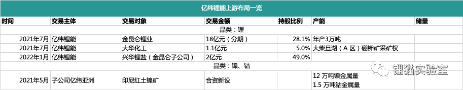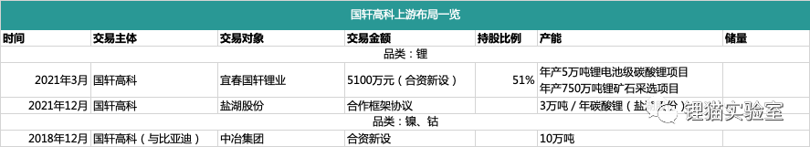 作為國內(nèi)的動力電池老四,國軒高科對于鋰的投資較為均衡,開始時間也更晚,2021年3月份才迎來第一次對于鋰礦資源的布局。