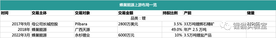 2018年,蜂巢能源獨立之后,又分兩次分別投資了廣西天源和永杉鋰業(yè),共計鎖定了6萬噸鋰產(chǎn)品產(chǎn)能。