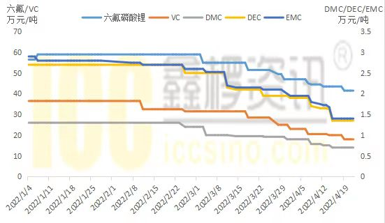 2022年1月-2022年4月:電解液材料價(jià)格走勢(shì)