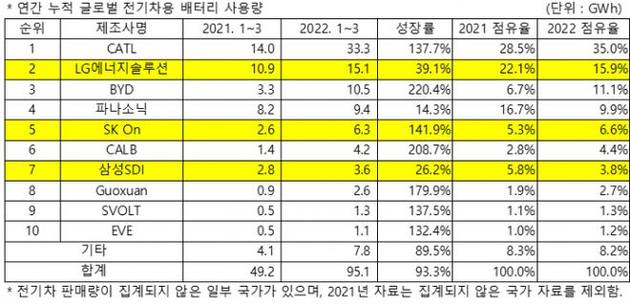 相較去年,中國(guó)動(dòng)力電池廠商們均實(shí)現(xiàn)了裝機(jī)量同比大幅增長(zhǎng),擠占了韓日廠商LG新能源(第二)、松下(第四)、SK On(第五)、三星SDI(第七)的市場(chǎng)占有率。