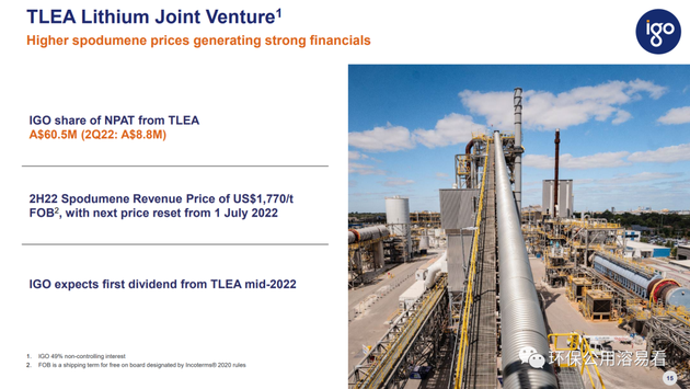 按照上述IGO業(yè)績(jī)會(huì)披露的數(shù)據(jù),今年一季度泰利森格林布什礦開(kāi)采量創(chuàng)下季度歷史記錄,確認(rèn)來(lái)自TLEA的凈利潤(rùn)貢獻(xiàn)較2021年四季度環(huán)比增長(zhǎng)了587.5%。