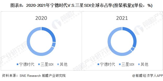 根據(jù)SNE Research的統(tǒng)計(jì),寧德時(shí)代的鋰電池裝機(jī)量2020年、2021年均保持在全球第一且呈現(xiàn)穩(wěn)步上升趨勢(shì);受制于產(chǎn)能以及鋰電池行業(yè)的激烈競(jìng)爭(zhēng),三星SDI的全球市占率有所降低,由2020年5.8%的2021年下降至4.5%。