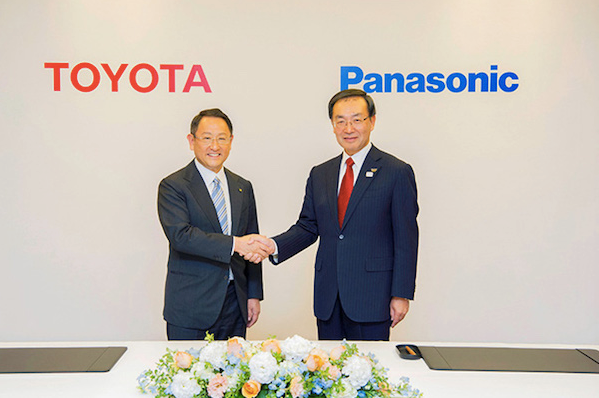 2017年12月,豐田董事長豐田章男與松下CEO津賀一弘在發(fā)布會的舞臺上微笑著握手,并宣布兩家公司在動力