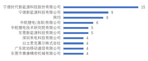 圖4:進(jìn)入無(wú)效程序的中國(guó)電池專(zhuān)利的TOP10權(quán)利人