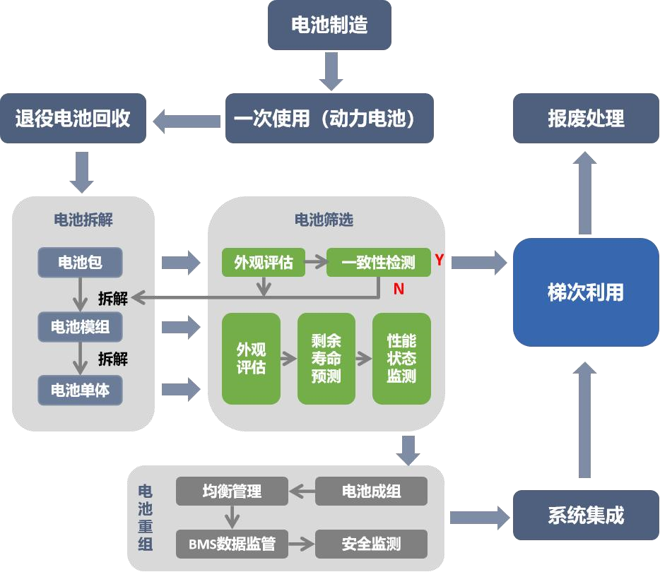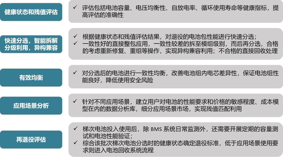 資料來源:《動(dòng)力電池梯次利用關(guān)鍵技術(shù)與應(yīng)用綜述》,崔樹輝等,2022年7月