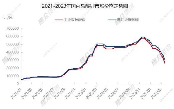 一切的轉(zhuǎn)機發(fā)生在2022年12月,碳酸鋰價格開始出現(xiàn)下滑,進入2023年,更是一路下行,短短3個月的時間,下跌幅度超過40%,直接突破30萬元/噸的關(guān)口,更為重要的是,目前,這種趨勢并沒有止住的跡象。