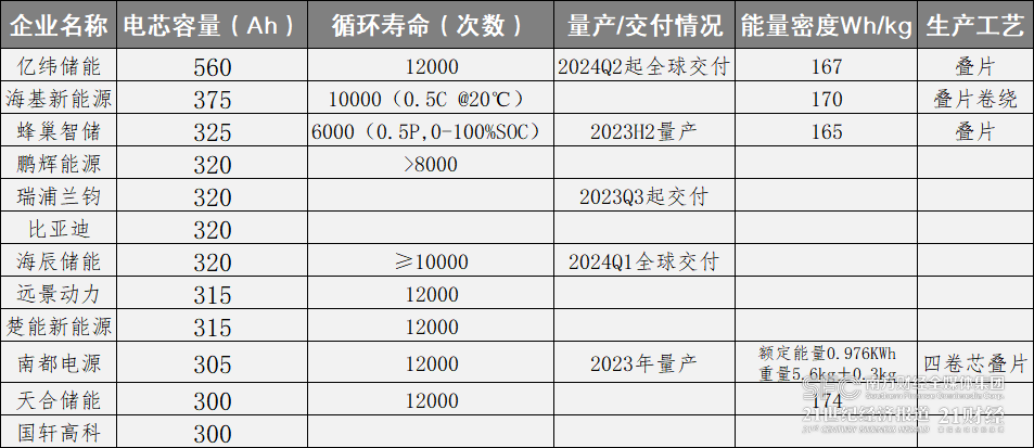 業(yè)內(nèi)率先推出超過(guò)300Ah電芯的是遠(yuǎn)景動(dòng)力,該公司在2021年發(fā)布了一款305Ah大容量?jī)?chǔ)能專用電芯,F(xiàn)如今,超過(guò)300Ah電芯容量的“大先生”們不再是市場(chǎng)上的稀罕物。越來(lái)越多電芯廠推出了形狀、工藝各異的300Ah以上容量的大電芯。