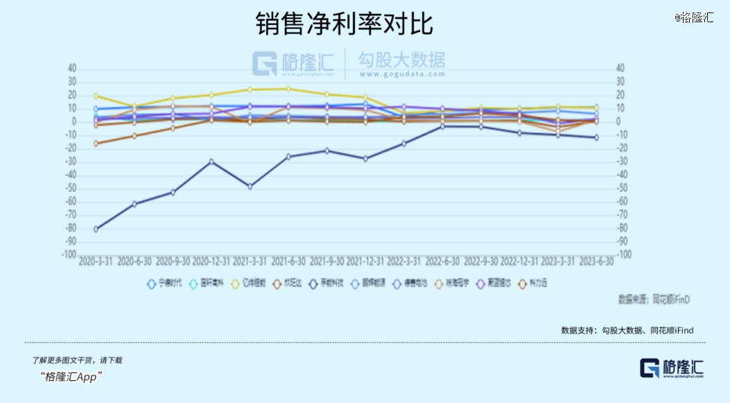 從銷售凈利率、存貨周轉(zhuǎn)等指標(biāo)上,目前能看到寧王“尾燈”的只有億緯鋰能了。二季度銷售凈利率,寧德時(shí)代以11.36%*其他企業(yè),而億緯鋰能也有著11%的水平,再無企業(yè)能做到10%以上的利潤(rùn)率。