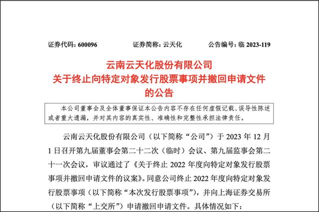 12月初,云天化宣布終止一項(xiàng)磷酸鐵鋰定增項(xiàng)目。資料顯示,該項(xiàng)定增發(fā)起于2022年11月,計(jì)劃募資不超過(guò)50億元,云天化雄心滿滿地宣稱,布局磷酸鐵鋰材料領(lǐng)域?qū)?ldquo;加快推進(jìn)公司轉(zhuǎn)型升級(jí)戰(zhàn)略落地”。