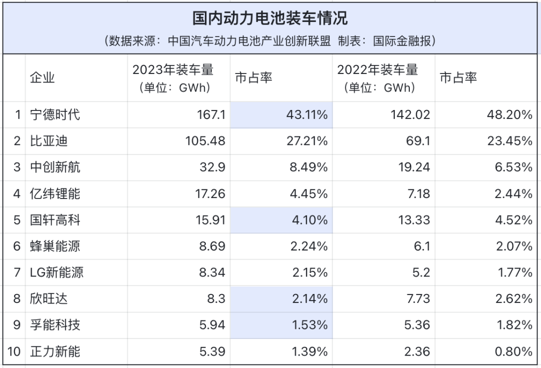 值得注意的是,寧德時(shí)代雖以167.1GWh的裝車(chē)量穩(wěn)坐第一,但其在國(guó)內(nèi)市占率降低至43.11%,較上一年下滑超5個(gè)百分點(diǎn)。