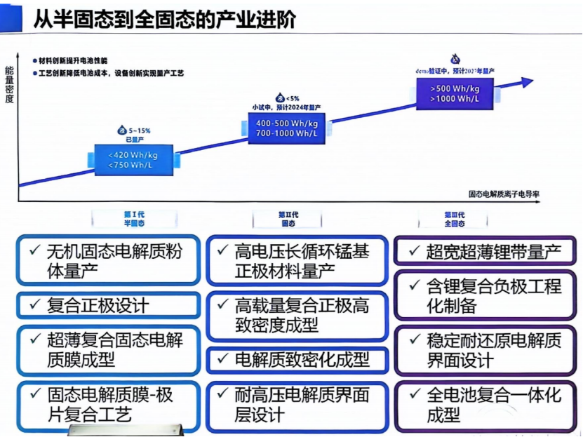 衛(wèi)藍主要是氧化物+聚合物路線,濕法工藝,部分設備自研。能量密度目標400Wh/kg以上,2027年左右實現(xiàn)全固態(tài)電池量產。