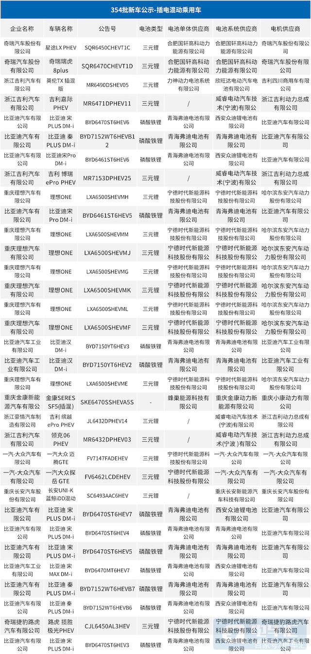 其次是理想汽車申報了8款插電增程混動車型,吉利汽車申報了4款插電混動車型,一汽大眾、奇瑞各申報了2款插電混動車型,長安、金康新能源、奇瑞捷豹路虎各申報了1款插電混動車型。