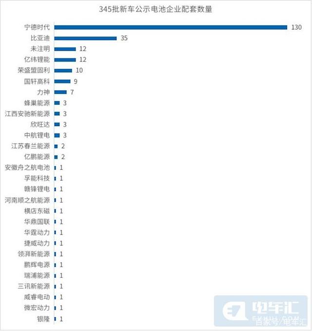 本批新車公示的246款新能源整車產(chǎn)品共有27家電芯供應(yīng)商,其中寧德時代配套了130款車型,占比52.8%。