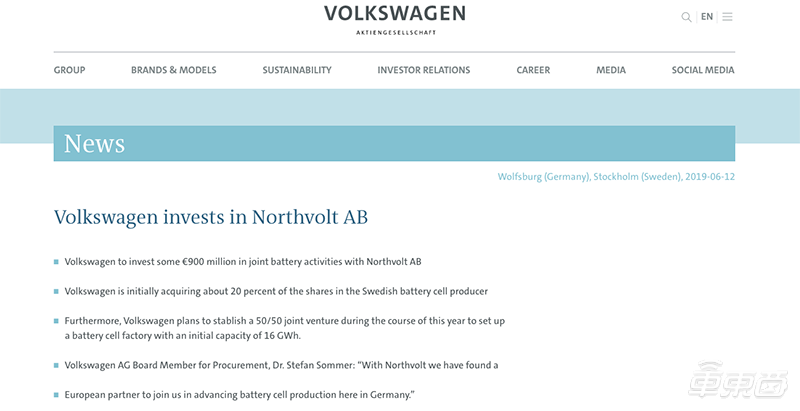 當前汽車年銷量最大的大眾集團,選擇的路線是投資歐洲本土動力電池公司Northvolt,成立動力電池公司研發(fā)生產(chǎn)動力電池公司,并鼓動其他動力電池公司擴大產(chǎn)能。