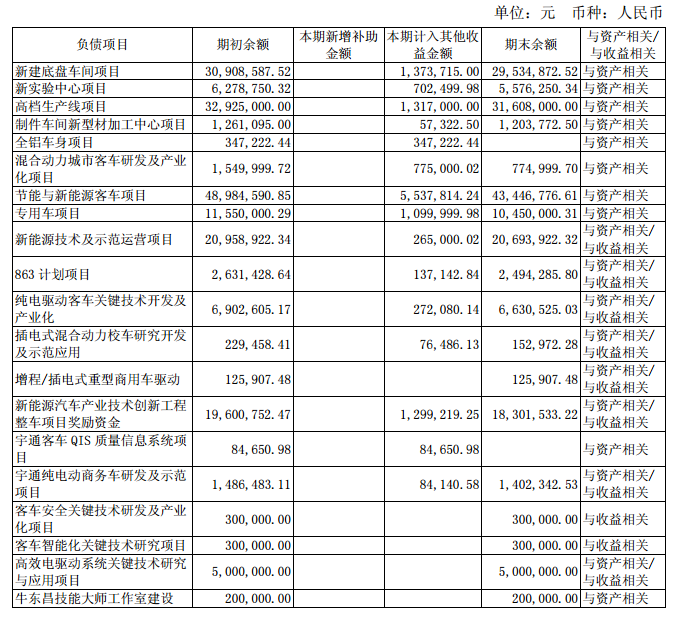 報(bào)告顯示,宇通客車有33項(xiàng)涉及政府補(bǔ)助的項(xiàng)目,其中20個(gè)為新能源客車項(xiàng)目,包括:混合動(dòng)力城市客車研發(fā)及產(chǎn)業(yè)化項(xiàng)目、節(jié)能與新能源客車項(xiàng)目、純電驅(qū)動(dòng)客車關(guān)鍵技術(shù)開發(fā)及產(chǎn)業(yè)化、插電式混合動(dòng)力校車研究開發(fā)及示范應(yīng)用、宇通純電動(dòng)商務(wù)車研發(fā)及示范項(xiàng)目、節(jié)能與新能源客車模塊化柔性化智能制造新模式、雙源快充純電動(dòng)公交客車開發(fā)及產(chǎn)業(yè)化項(xiàng)目、燃料電池城市客車關(guān)鍵技術(shù)研究及整車開發(fā)項(xiàng)目等,合計(jì)金額3.18億元。