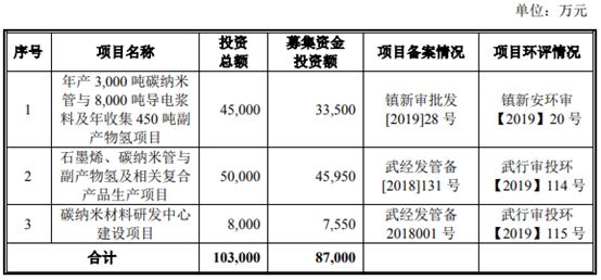 根據(jù)招股說明書,天奈科技本次公開發(fā)行股份不少于5796.45萬股。募集資金擬投資項目如下: