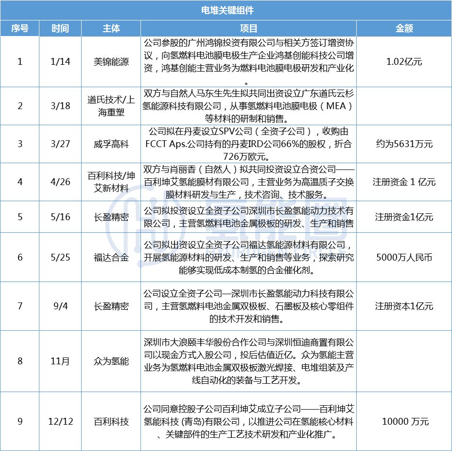 其中,單次投資金額相對最高的也是燃料電池動力系統(tǒng)及整車領域的項目。