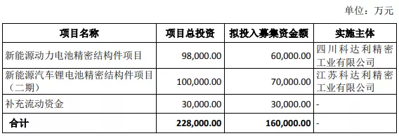 電池精密結(jié)構(gòu)件項(xiàng)目(二期)和補(bǔ)充流動(dòng)資金。